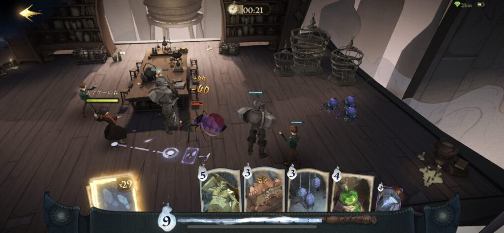 この作品の戦闘システムはハリーポッターの世界観を忠実に再現しており、「呪文カード」「召喚カード」「仲間カード」を駆使して戦うリアルタイムカードバトルに仕上がっていました!